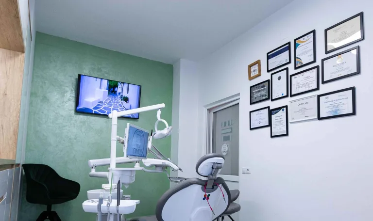 Ultima parte este coroana dentară – partea vizibilă, cea care arată și funcționează exact ca un dinte natural. Este realizată din materiale precum ceramica sau zirconiul, pentru un aspect natural.